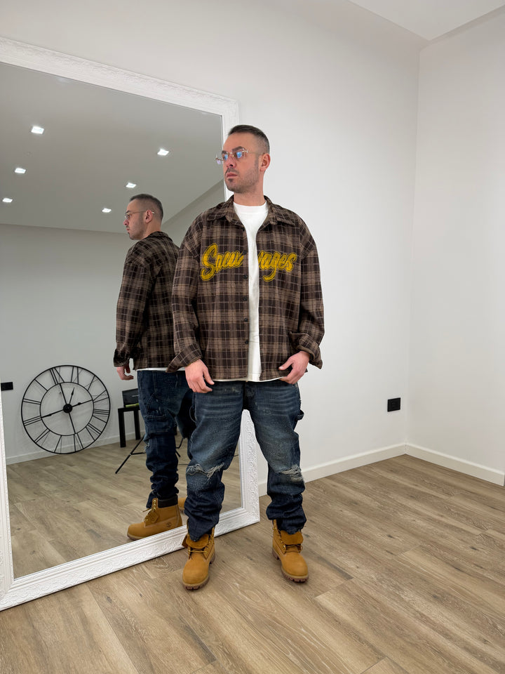 Camicia Sauvage in flanella di qualità superiore, caratterizzata da una stampa distintiva sul petto che cattura l'essenza dello stile outdoor. Il tessuto in flanella garantisce calore e traspirabilità, perfetto per le stagioni intermedie e i giorni più freschi. La trama robusta assicura durabilità nel tempo, mentre il design essenziale con stampa frontale la rende versatile per abbinamenti casual e semi-formali. Ideale per chi ricerca comfort senza compromessi sulla qualità costruttiva.