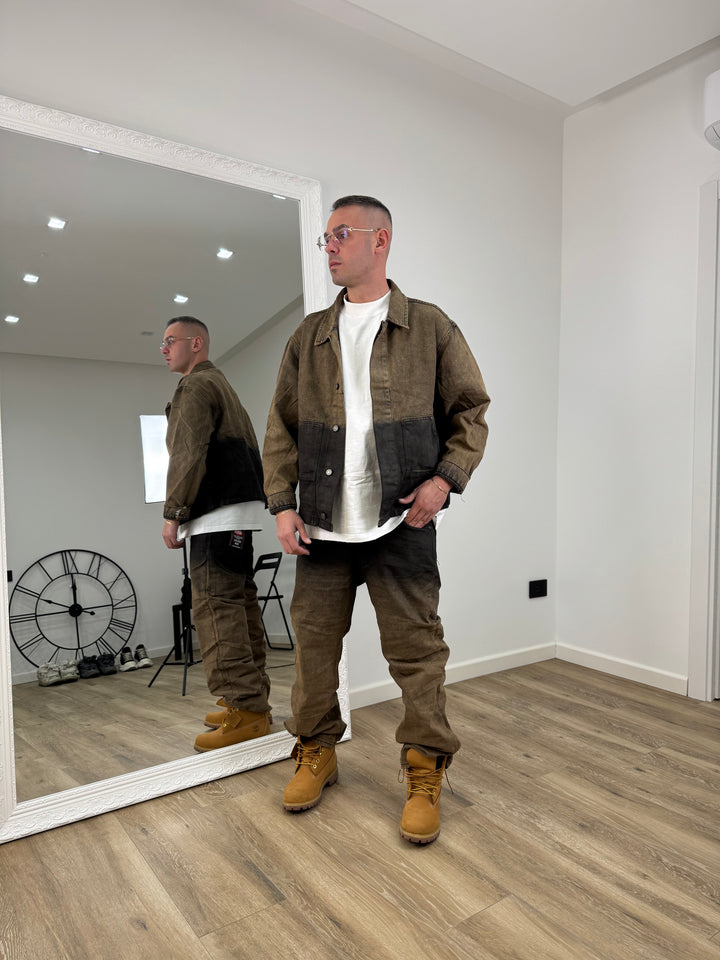 Il coordinato in denim "Coordset Monroe" unisce stile contemporaneo e versatilità, con una giacca e jeans baggy caratterizzati da un originale lavaggio arancio scuro che sfuma nel nero. Questo effetto cromatico crea un look distintivo e dinamico, ideale per chi cerca un outfit moderno con un tocco di carattere. La vestibilità ampia dei jeans garantisce comfort e libertà di movimento, mentre la giacca completa il look con una silhouette strutturata ma rilassata. Perfetto per chi desidera un denim innovativo e di qualità superiore.