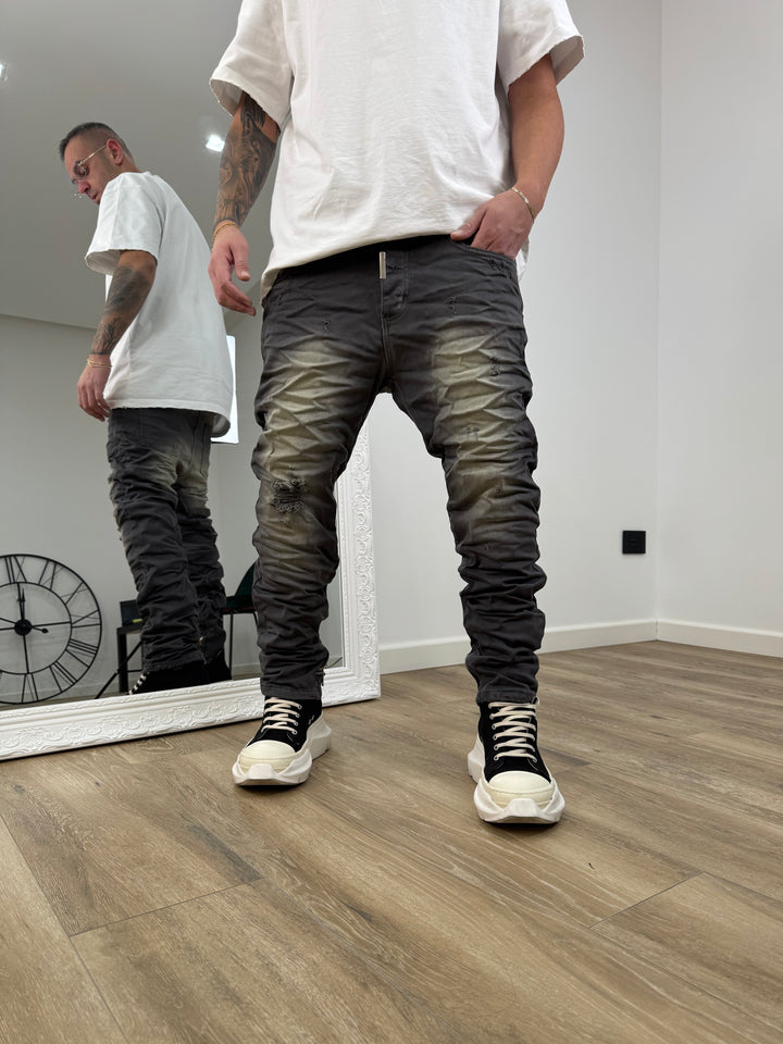 Esibisci uno stile biker con questi jeans lavaggio grigio con spruzzo sabbiato. Realizzati in denim di alta qualità, regalano un look originale e di tendenza. Ideali per un outfit casual ma allo stesso tempo grintoso. Non passare inosservato, indossa i jeans Denim Biker DNC Grey Spruzzato CNTC."