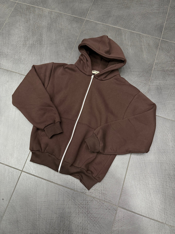 Felpa in cotone organico con zip frontale e cappuccio regolabile, progettata per il massimo comfort quotidiano. La costruzione robusta garantisce durabilità nel tempo, mentre il tessuto traspirante mantiene la giusta temperatura corporea. Tasche laterali funzionali e cuciture rinforzate completano un capo versatile, ideale per layering o indossato singolarmente. Perfetto per chi ricerca qualità essenziale senza compromessi.