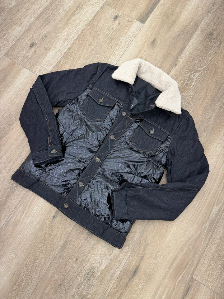 Questo giubbino modella DSq* è perfetto per un look elegante e versatile. Grazie alla pelliccia rimovibile sul collo, si può adattare a qualsiasi stagione. Il doppio tessuto di denim e lucido offre un effetto unico e di tendenza. Un capo di qualità e di stile per ogni occasione.