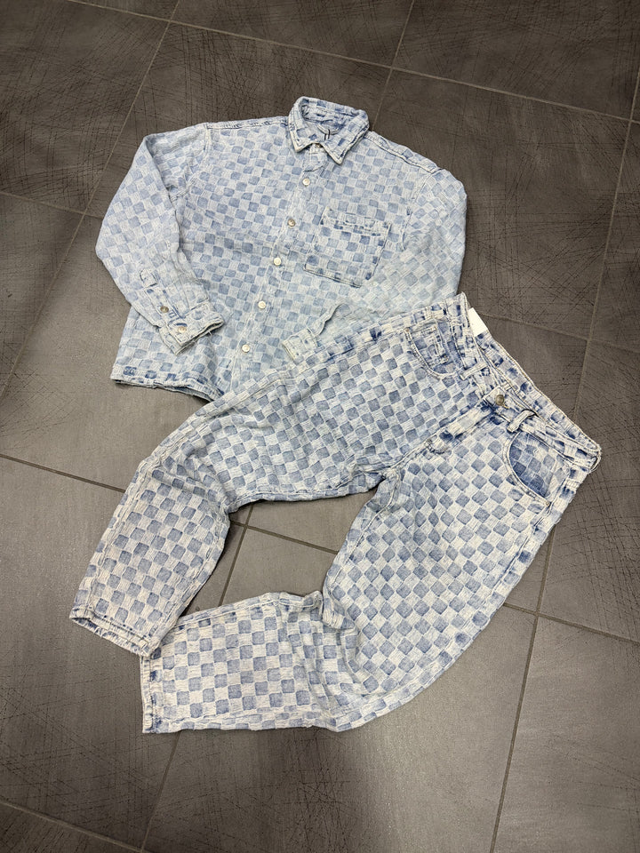 Coordset denim essenziale che combina funzionalità e design contemporaneo. La giacca dotata di zip frontale consente una vestibilità regolabile e pratica, mentre il pantalone jeans baggy assicura massimo comfort e una silhouette rilassata. Ideale per chi desidera un outfit versatile e di tendenza, questo coordinato si adatta a molteplici occasioni. Un capo fondamentale per chi apprezza la qualità del denim autentico e lo stile senza compromessi.